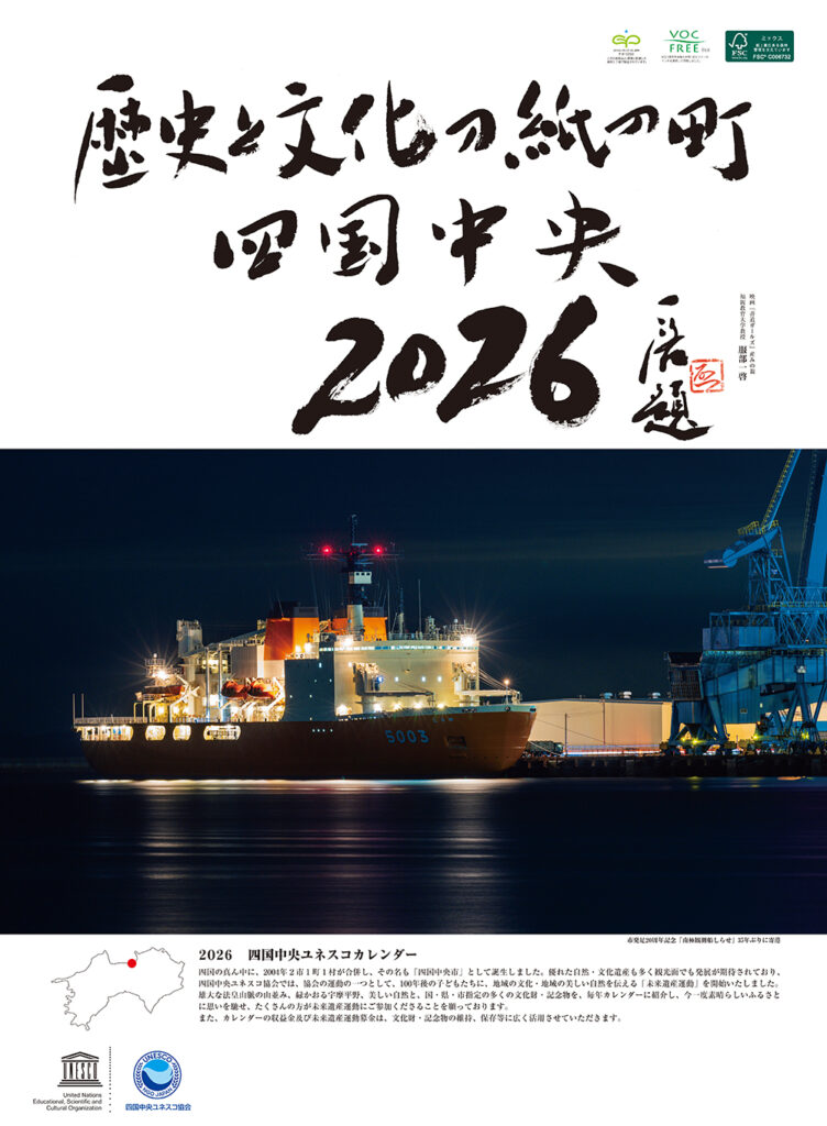 今年も写真家の高橋伸治さんの協力を得て、地域の懐かしい風景や文化財の写真6枚を掲載した「歴史と文化の紙の町四国中央2026」が出来上がりました!